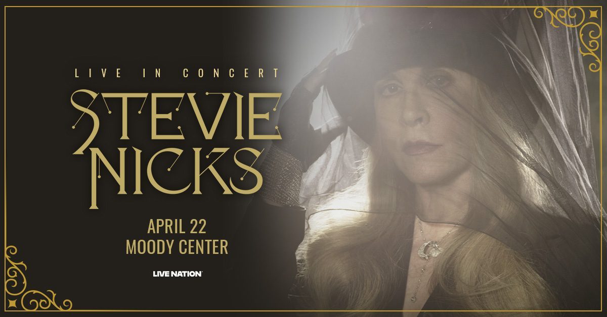 Moody Center 2001 Robert Dedman Dr, AustinEvent: Stevie Nicks Date: April 22 Venue: Moody Center Stevie Nicks brings her spellbinding presence to Austin for one unforgettable night at the Moody Center on April 22. Expect a career-spanning set filled with timeless Fleetwood Mac classics,